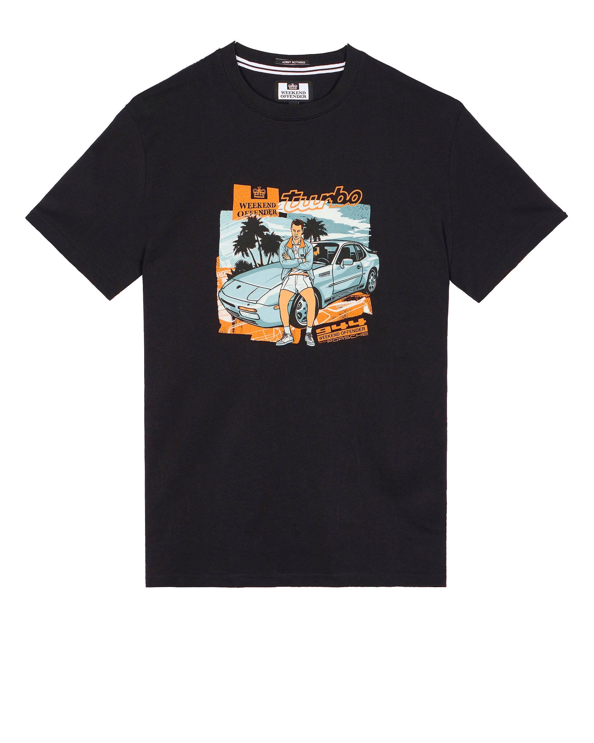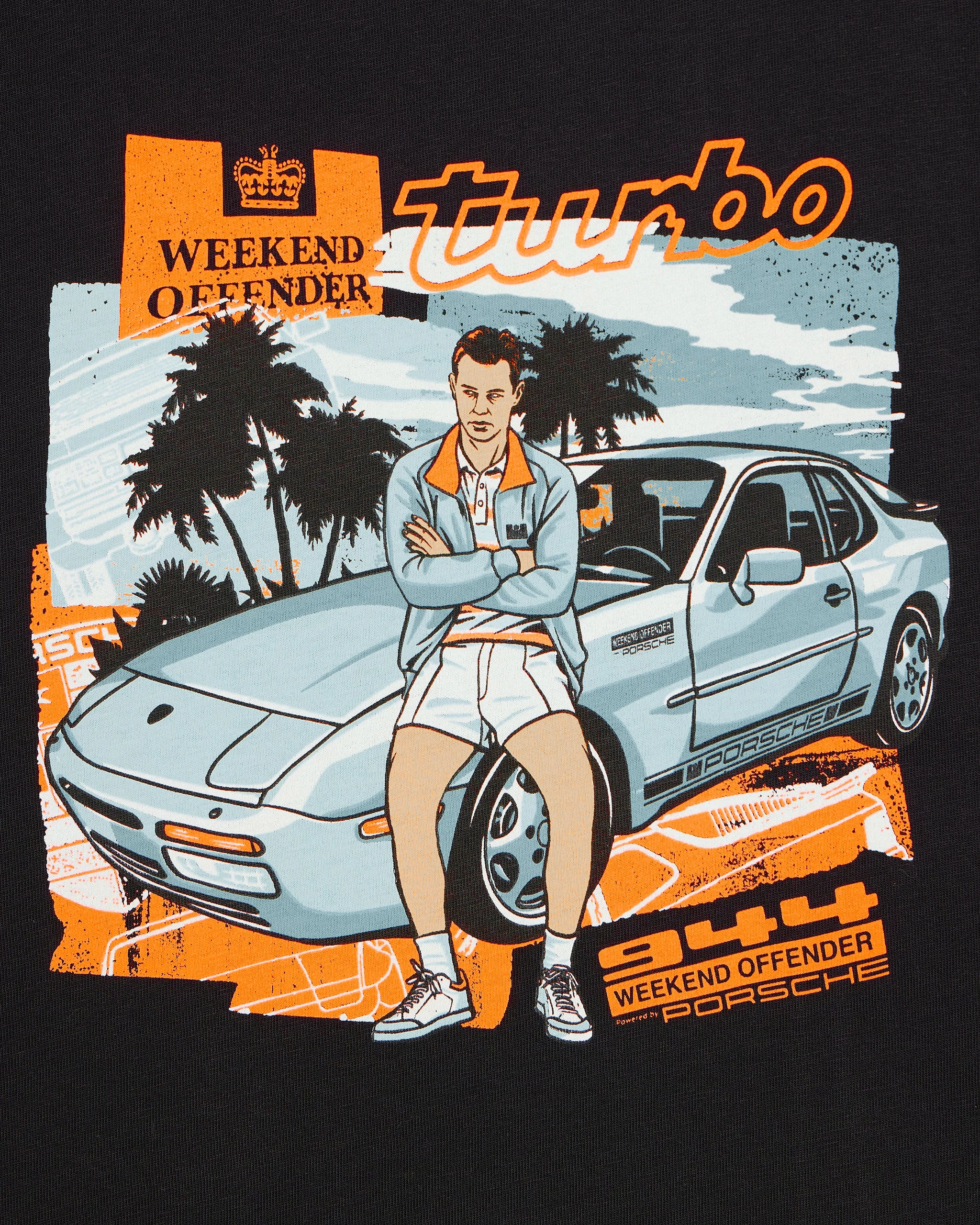 Frankie from the cult film The Business relaxing on the bonnet of our Weekend Offender customised Porsche 944.