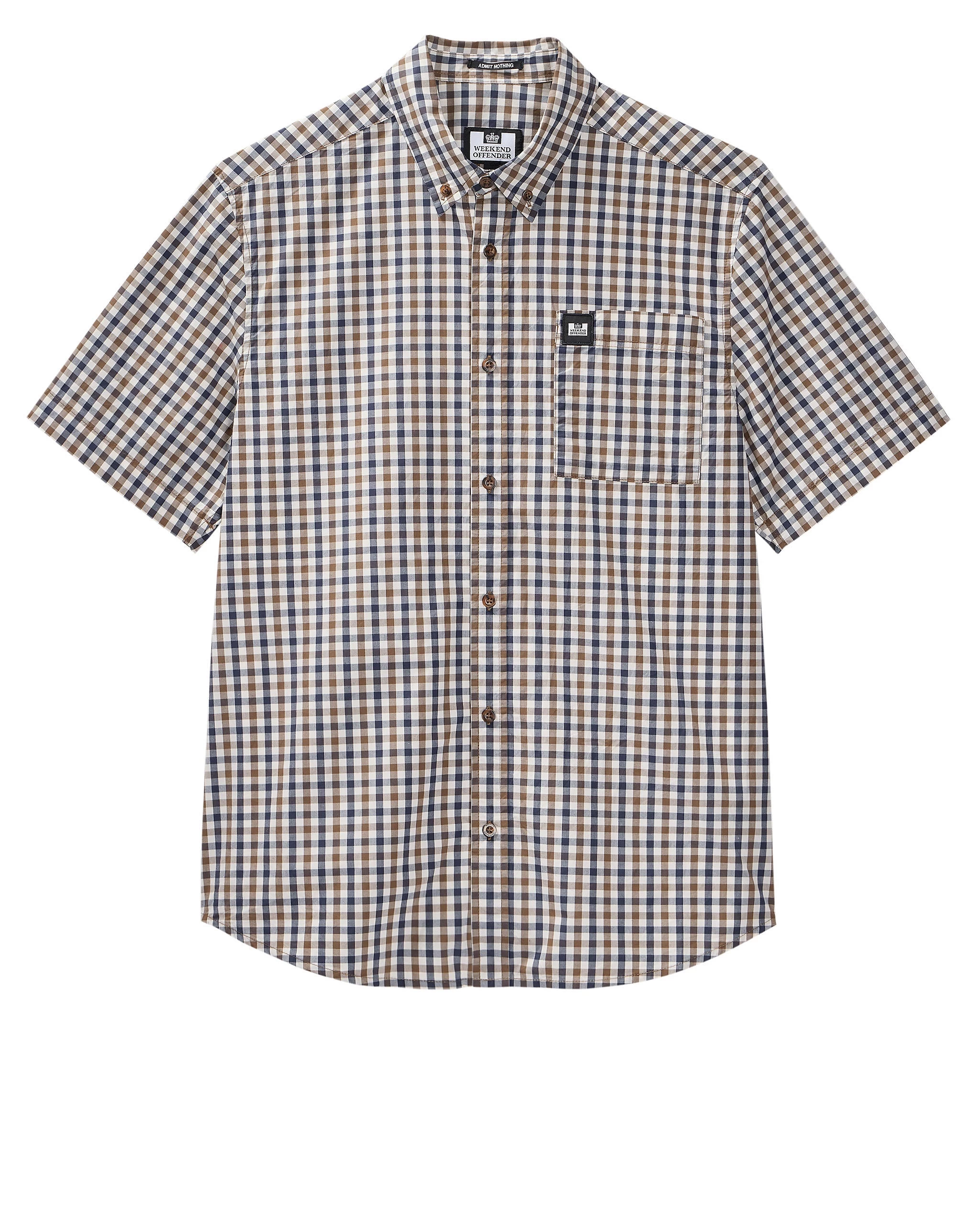 Updated classic short sleeved WO shirt made from 100% Cotton fine weave house check with a smart crisp finish.