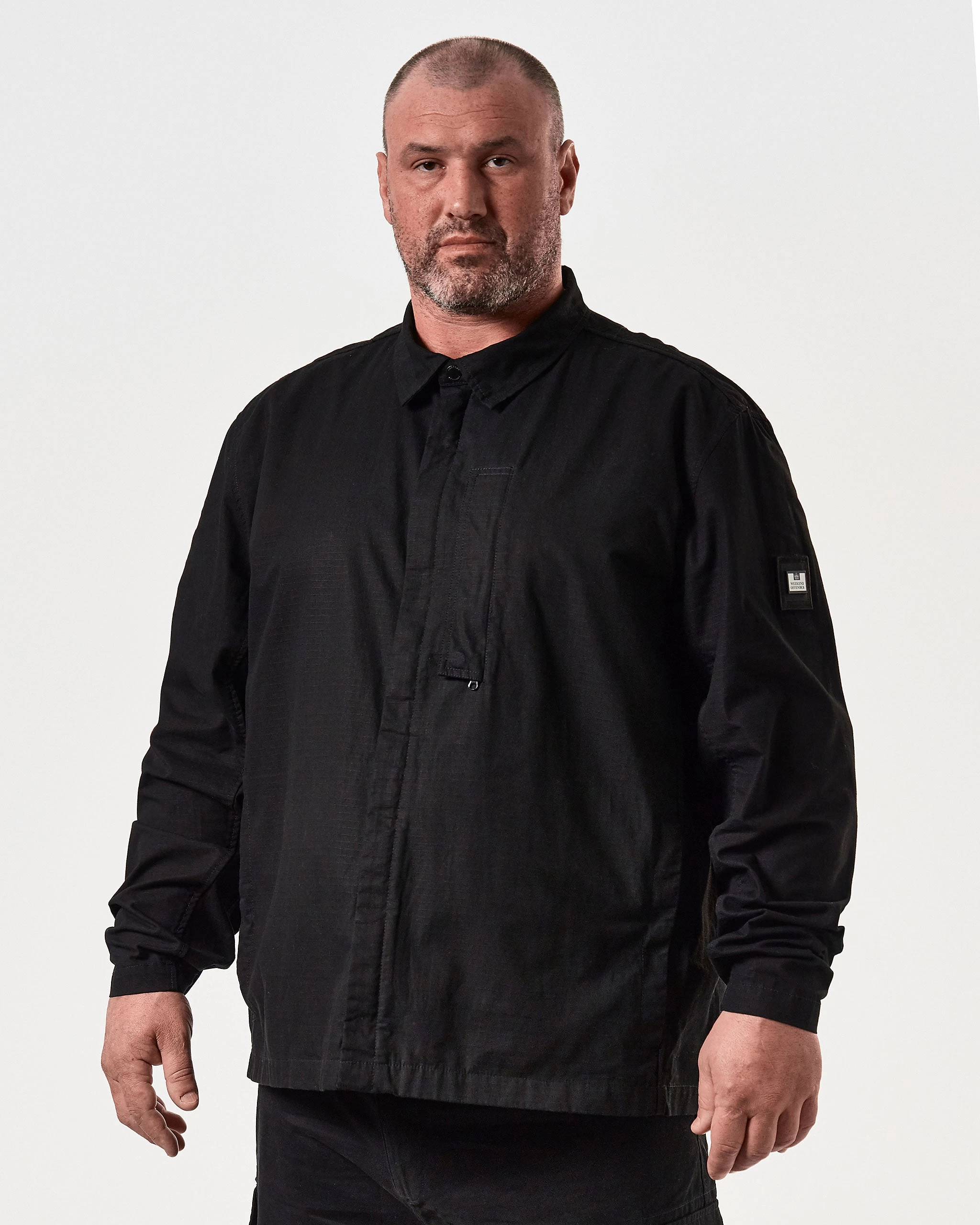 â–ª Storm placket with WO branded press stud to collar