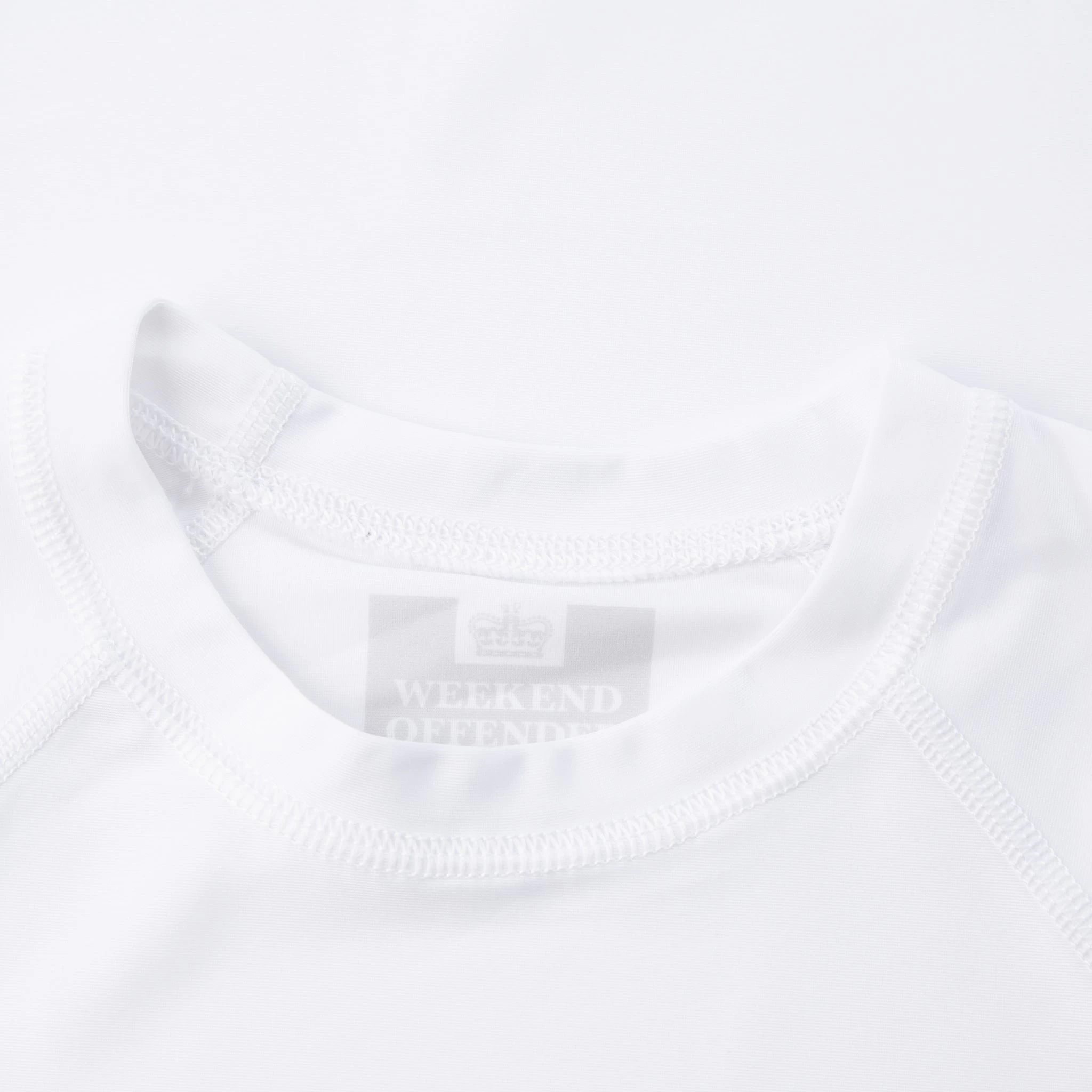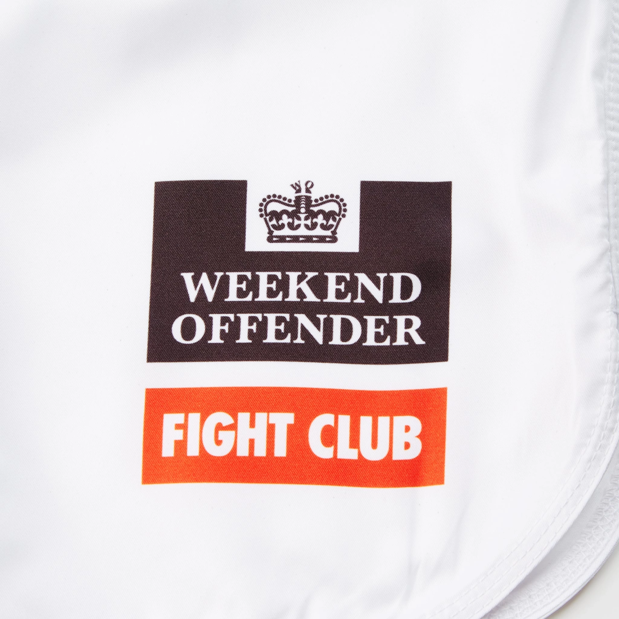 A new addition to our Sporting Goods collection is our Rashguard and Shorts set. This new colourway comes in White and features the ‘WEEKEND OFFENDER’ and ‘FIGHT CLUB’ logos dye-sublimated to the left chest of the Rashguard top and to the left leg of the shorts. The shorts come with an elasticated waistband and feature black elasticated spandex between each inner thigh to aide movement and comfort.